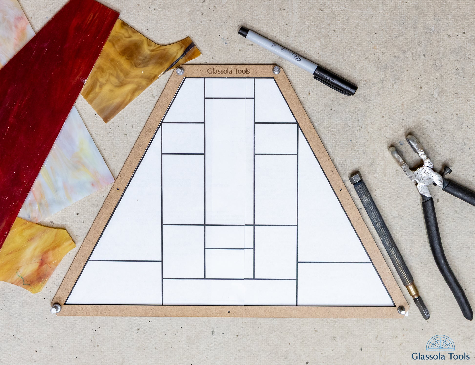 Make a stained glass lampshade easily and quickly with Glassola Tools layout frames!
