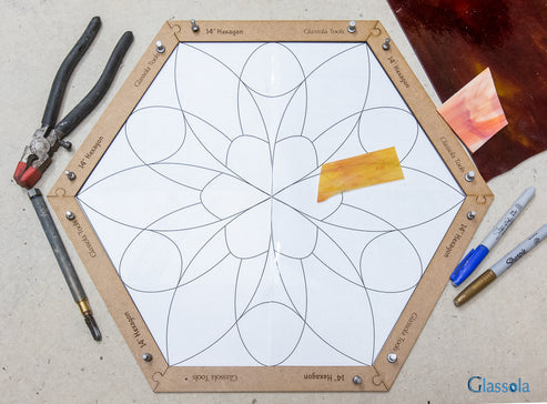 To use the layout frame, simply pin it to your workboard over your pattern, and fill the pieces in as you go. From cutting to grinding to foiling, to soldering, your suncatcher will maintain its perfect shape. The water and heat-resistant frames will stand up to many uses.