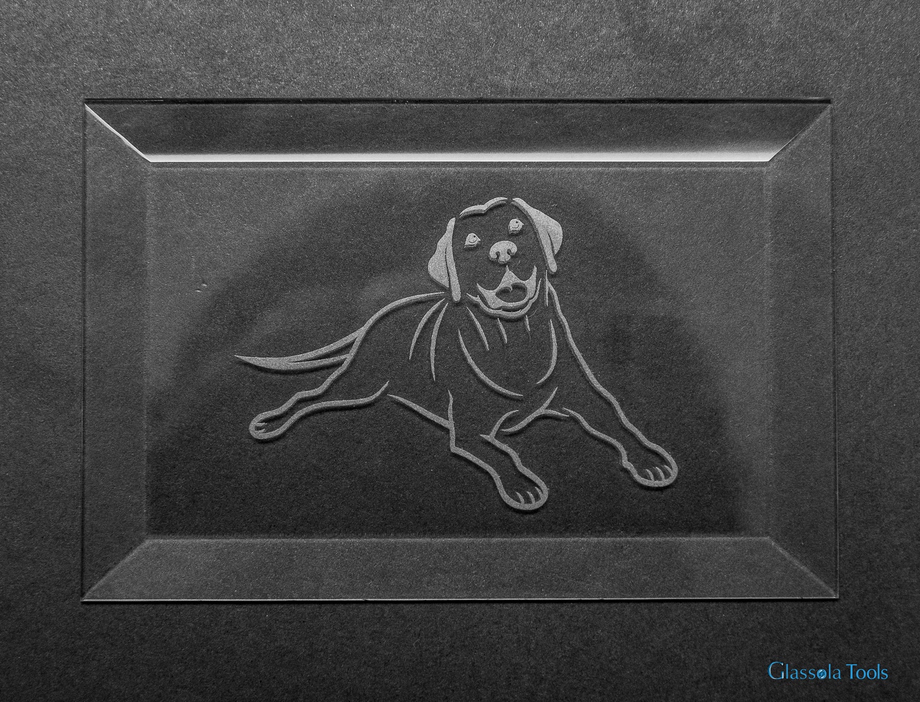 Canine contentment, captured in laser-engraved glass! This happy fellow is hard not to like, expressing doggy happiness in your panels or suncatchers.