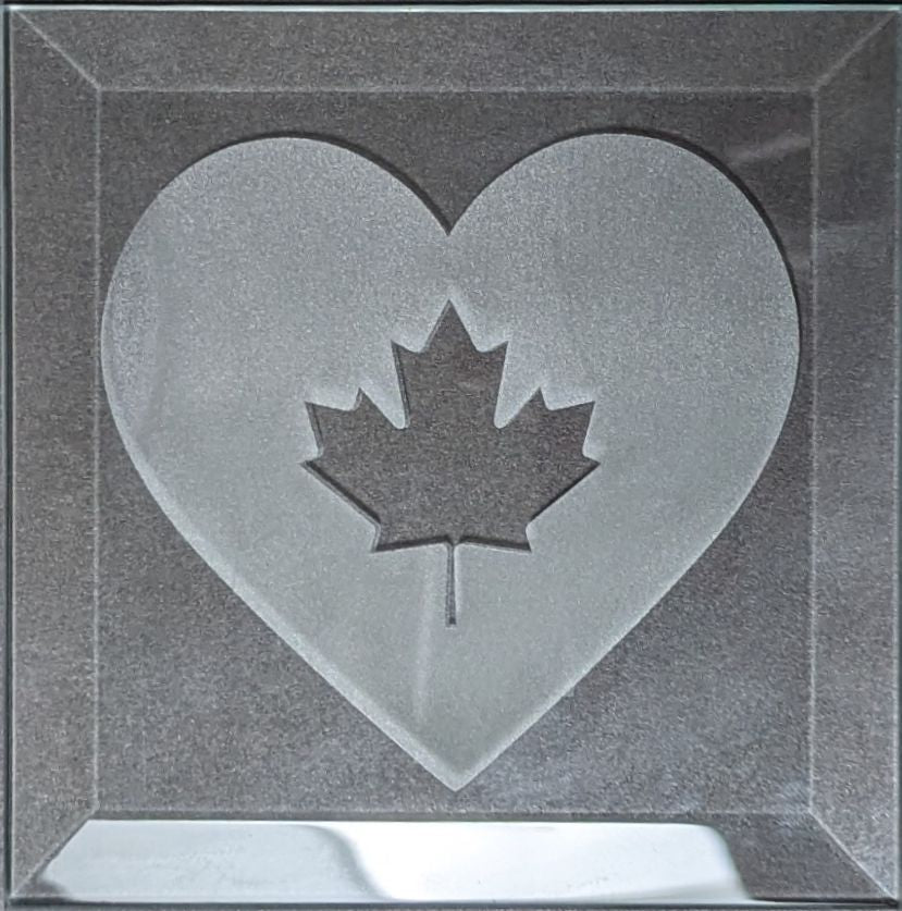 If you've got customers who love Canada, they'll love any piece with this engraved bevel at the centre! A heart is filled with the iconic Canadian maple leaf, a clear statement of Canadian pride. With this engraved bevel at the centre, you'll attract buyers from anywwhere in Canada, whether you're selling in person or online.