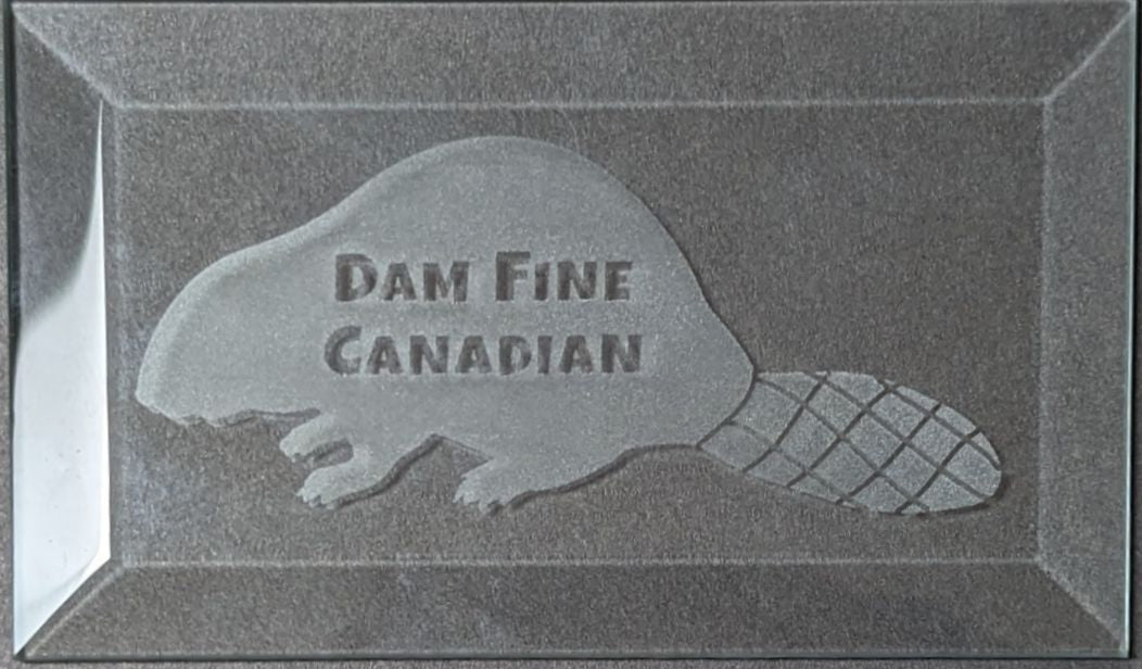 Here's an engraved bevel that says Canada in every possible way! This rectangular bevel has a beaver in the middle of it, with "Dam Fine Canadian" inscribed on it. No good Canadian can refuse a suncatcher or panel with this bevel at the centrepiece!