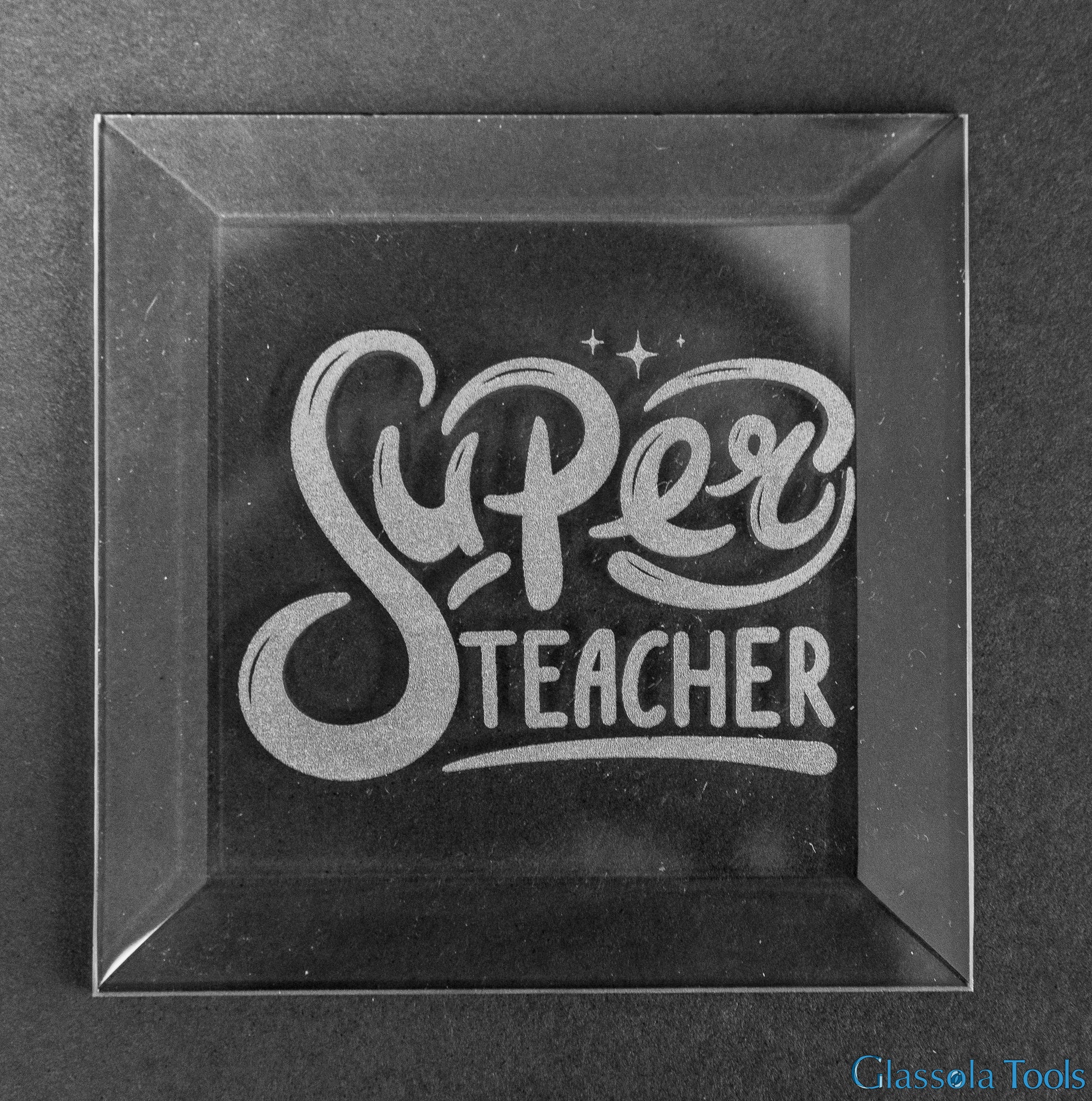 Whether you're filling your Etsy store with new pieces, preparing stock for spring craft shows, or planning to make a gift for your own kid's teacher, this engraved bevel is the perfect centerpiece for your panel or suncatcher.