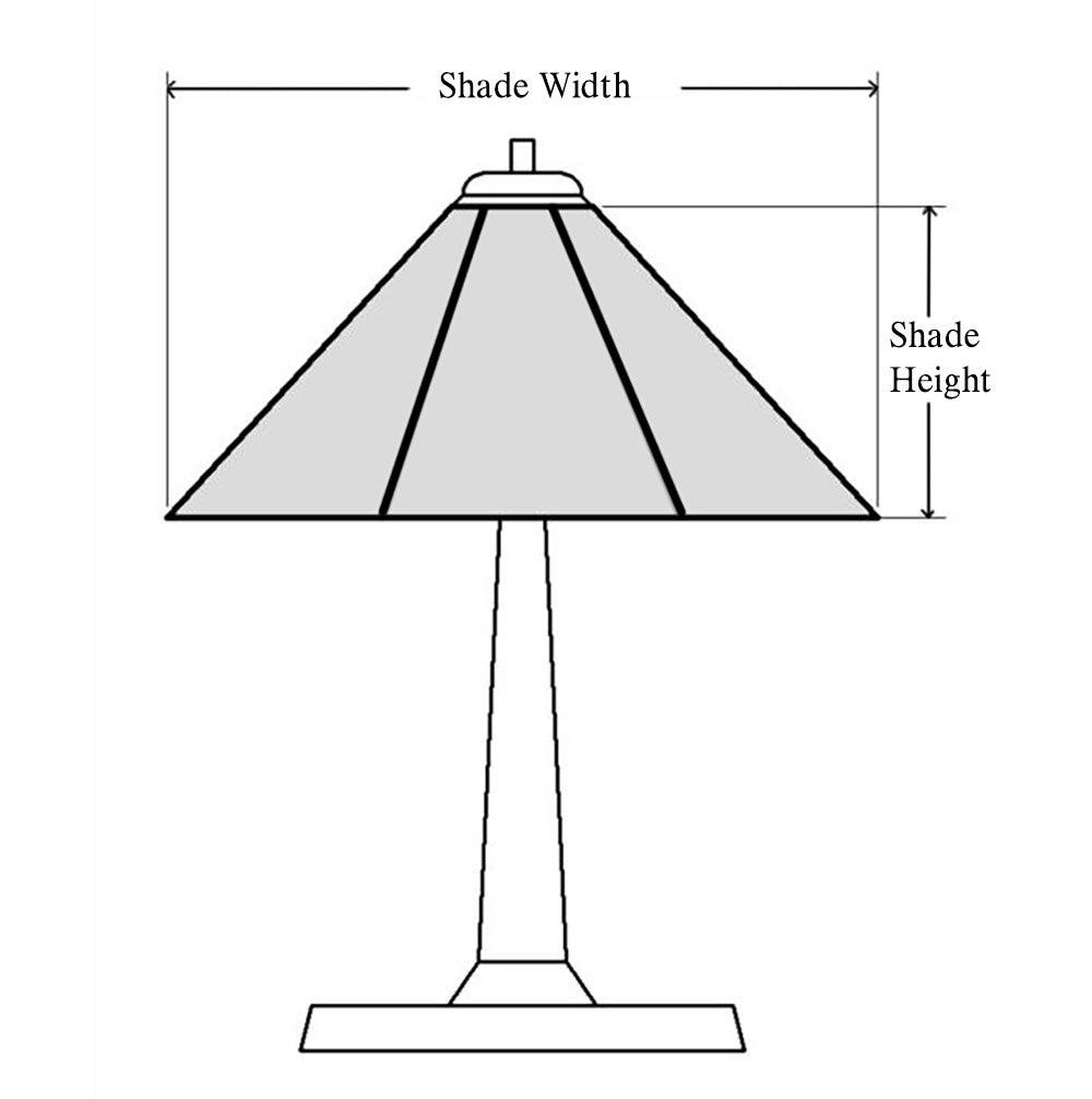 Lamp sizes describe the narrowest width of the base of the lampshade and the height of the lampshade after assembly.