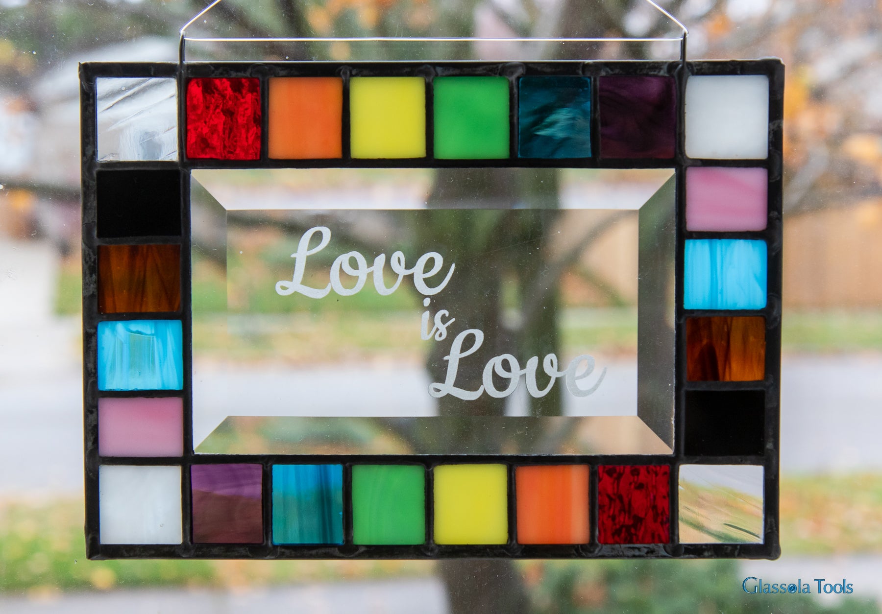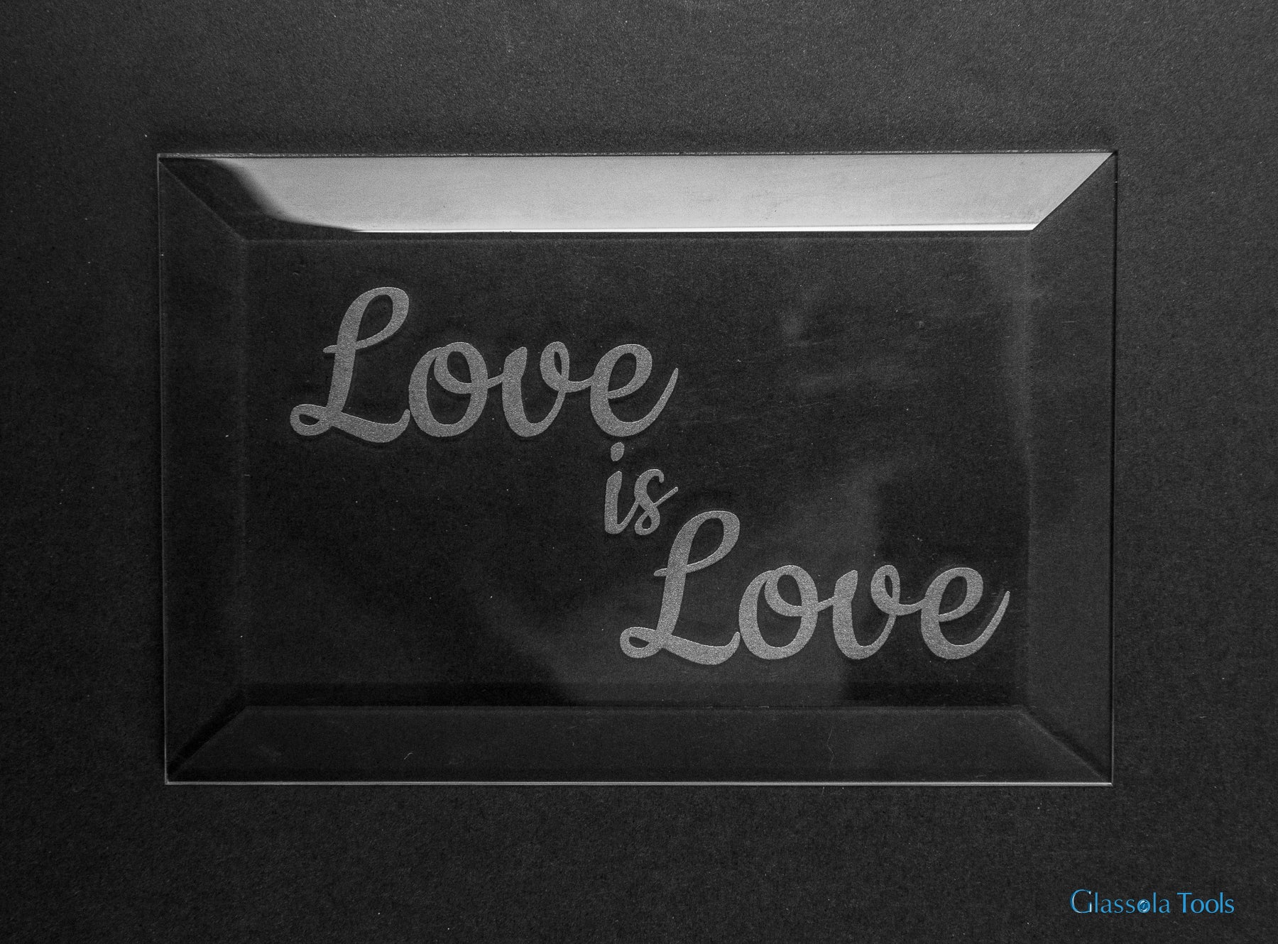 This laser-engraved bevel expresses the importance of inclusiveness, positivity, and above all, love. "Love is Love" is indelibly engraved in a lovely and very readable script font. Perfect for inclusion in a suncatcher or panel for an engagement, wedding, or housewarming gift.