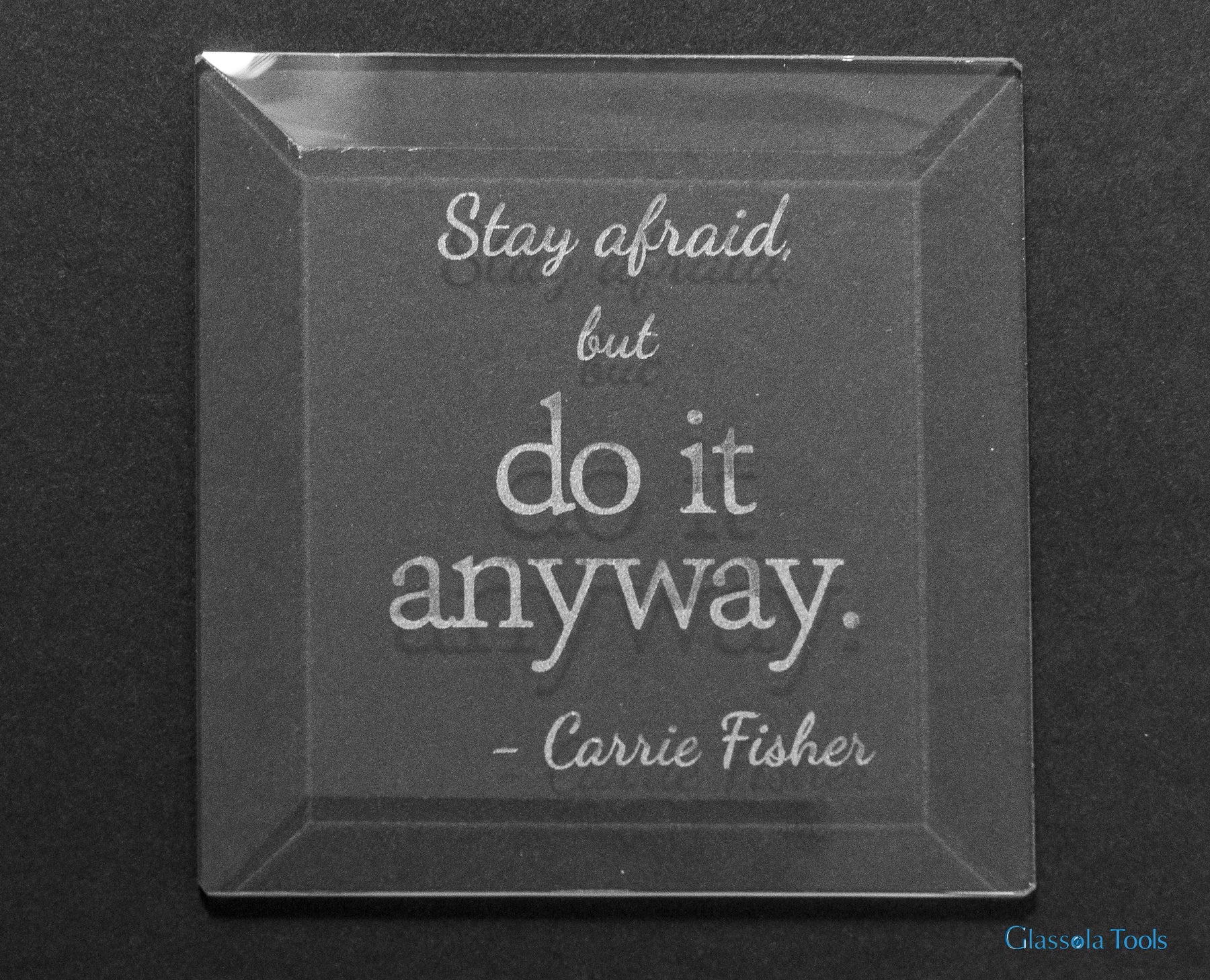 This laser-engraved square bevel is available in 4"x4" and 5"x5" sizes. The beveled edges catch extra light for a beautiful, prismatic effect.