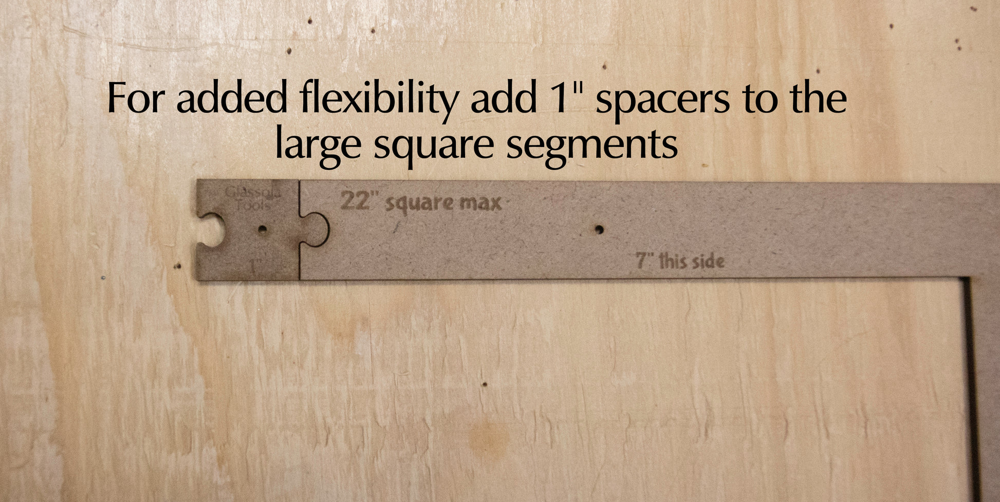 If you've bought our large square layout frames and wondered how to get squares with odd dimensions, wonder no more! We've got a pack of four 1" spacers to help you get 13, 15, 17, 21, 23 and 25" square frames. And a helpful hint: they will also fit with our modular rectangular layout kit.