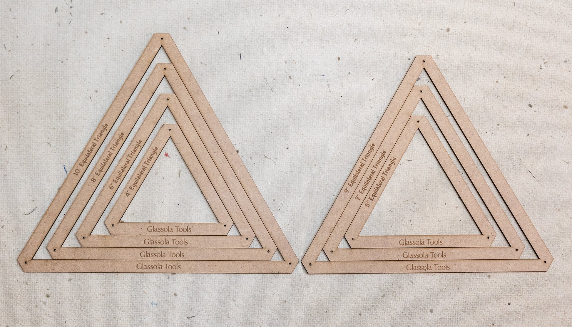 A wide range of interesting triangular stained glass patterns are available - and now you can construct them easily, more quickly, and with less hassle using Glassola Tools triangle layout frames - seven different sizes of equilateral triangles for your next glass projects!